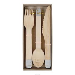 XP68342 tematy i okazje MERI MERI zestaw sztućców drewnianych srebrnych (x 24)