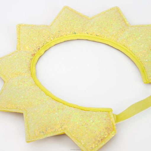 Pozwól swoim dzieciom świecić jasno dzięki temu pięknemu nakryciu głowy w kształcie słońca. jest wykonany z żółtej, błyszczącej tkaniny i filcu, z oszałamiającymi detalami wstążki. idealny kostium na imprezę lub inną wesołą uroczystość lub do kreatywnej zabawy.