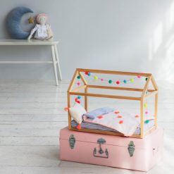 Niech sen ulubionej lalki rozpocznie się stylowo dzięki naszej rewelacyjnej drewnianej ramie łóżka. W zestawie ładna girlanda z pomponów, która dodaje modnego, kolorowego akcentu, oraz wygodny materac w paski.