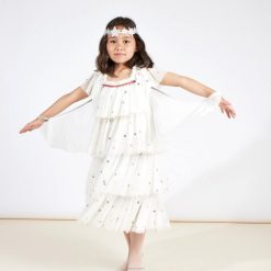 Przemień swoje dzieci w piękne anioły dzięki temu wspaniałemu kostiumowi. jest idealny do zabaw, przyjęć i przebieranek, zapewniając wiele godzin pomysłowej zabawy. ma przepiękną tiulową sukienkę z cekinami, z odpinanymi skrzydełkami i opaskę w kształcie srebrnej, brokatowej gwiazdy.