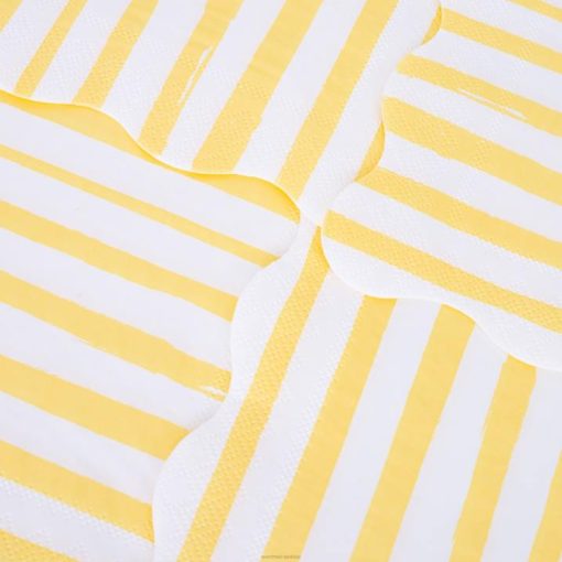 Dodaj radosnego akcentu koloru do swojego imprezowego stołu dzięki tym serwetkom w słoneczne żółto-białe paski. ząbkowane obramowanie również daje stylowy efekt.