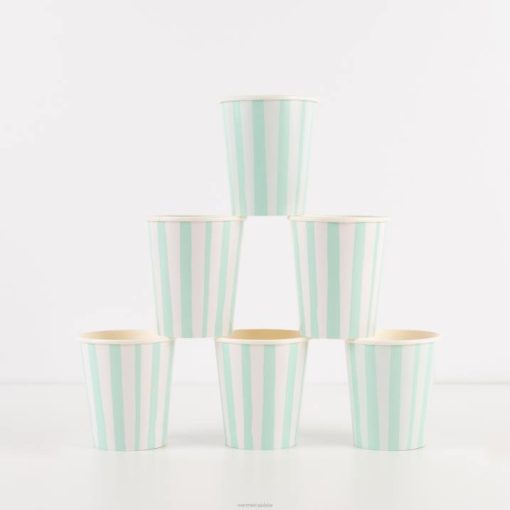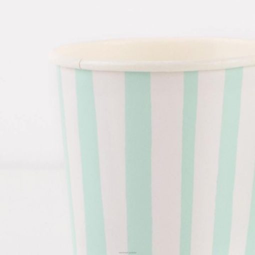 te miętowo-białe kubki w paski będą wyglądać fantastycznie na Twoim imprezowym stole. są także naprawdę stylowym sposobem na podanie specjalnych drinków. idealne na przyjęcia urodzinowe, baby shower, pikniki lub przyjęcia w ogrodzie.