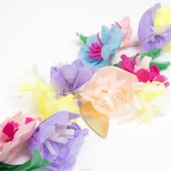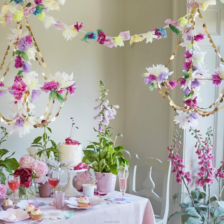 wprowadź piękno natury do swojego domu dzięki tej wspaniałej girlandzie. przedstawia różnorodne jasne i piękne proporczyki z kwiatami i liśćmi wykonane z pastelowej i neonowej tkanki ze stylowymi detalami ze złotej folii.