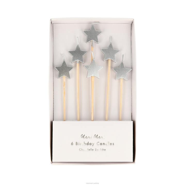 XP6840 zaopatrzenie imprez MERI MERI świeczki srebrne gwiazdki (x 6)