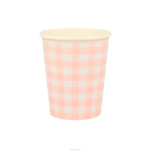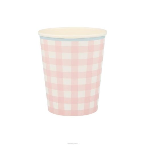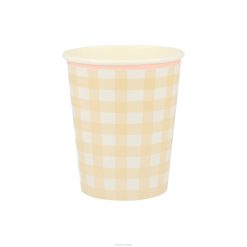 gingham to wspaniały nadruk na wiosnę. wspaniale prezentuje się na tych filiżankach, które idealnie nadają się do serwowania orzeźwiających napojów na przyjęciach lub piknikach.