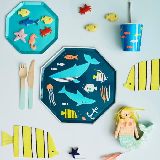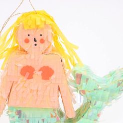 Ta mini pinata w kształcie syreny, wyrwana z magicznego podwodnego królestwa, jest idealna na wyjątkową uroczystość. syrenka jest ozdobiona opalizującymi i kolorowymi frędzlami z bibuły, pełna kolorowych konfetti bibułkowych i arkusza tymczasowych tatuaży dla zwycięzcy nagrody! jest też miejsce, w którym możesz wypełnić ją dodatkowymi gadżetami.