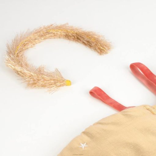 ten wspaniały anielski zestaw idealnie nadaje się do noszenia podczas szkolnych jasełek, przyjęć lub kreatywnych zabaw. luksusowe złote, lame skrzydła są wyściełane i pikowane oraz ozdobione białymi haftowanymi gwiazdami. opaska została zaprojektowana tak, aby delikatnie zawijać się wokół czoła, zapewniając oszałamiający efekt.