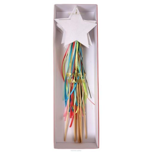 dodaj szczyptę magii do swojej uroczystości dzięki tym kolorowym magicznym różdżkom. każda różdżka jest zwieńczona gwiazdą i ozdobiona kryształowym brokatem i kolorowymi wstążkami. doskonale nadają się jako prezenty na przyjęcie księżniczki lub wróżki, a także można je włożyć do imprezowych torebek.