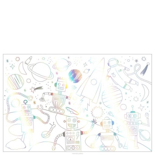 mali astronauci pokochają te błyszczące plakaty do kolorowania kosmosu. z holograficznymi ilustracjami robotów i sceny kosmicznej ze srebrnej folii, będą wyglądać niesamowicie jako dekoracja sypialni. wspaniały prezent na zabawę w deszczowe dni.