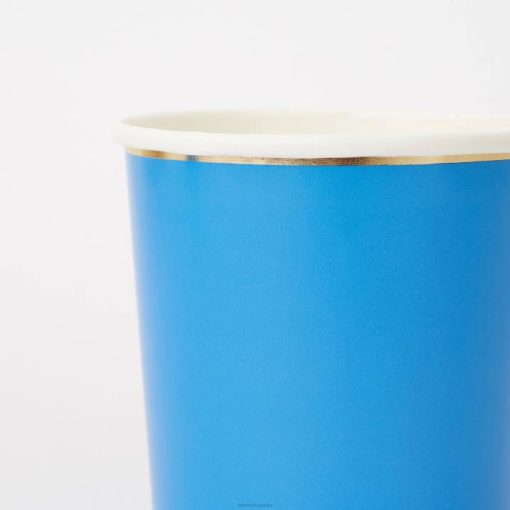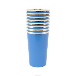 Te jasnoniebieskie filiżanki typu highball ze stylową, błyszczącą złotą obwódką to jasny i piękny sposób na podanie orzeźwiających napojów. wykonane z wysokiej jakości kartonu o doskonałym błyszczącym wykończeniu, odpowiednie do gorących i zimnych napojów.