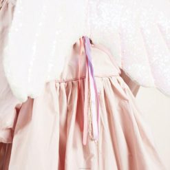 ten wspaniały zestaw sukienek ze skrzydlatym jednorożcem jest idealny dla małych ludzi w wieku 3–6 lat, którzy uwielbiają jednorożce i marzą o wzbiciu się w przestworza! ma błyszczące skrzydła oraz błyszczący róg jednorożca i nakrycie głowy na ucho, oba pięknie wykonane z różowej, opalizującej tkaniny z cekinami i podszyte białym filcem. skrzydła mają powiewny frędzel ze wstążki, który dodaje niesamowitego koloru i stylu.
