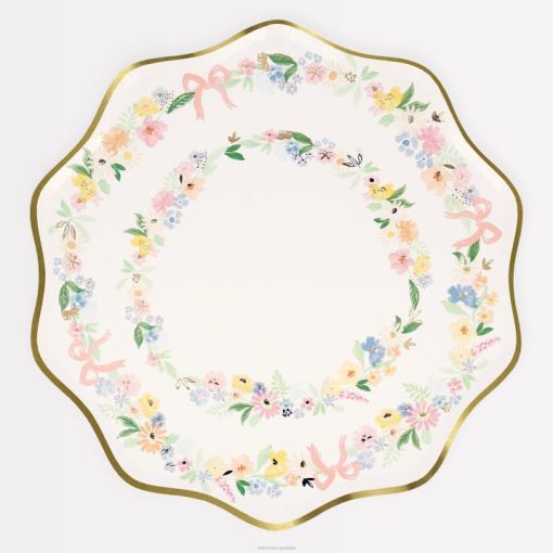 XP68886 zaopatrzenie imprez MERI MERI eleganckie, kwiatowe talerze obiadowe (x 8)