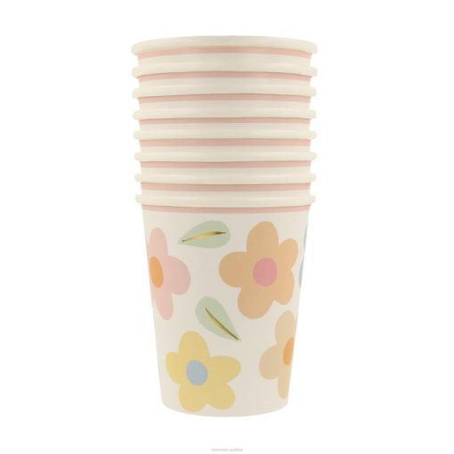 XP68894 zaopatrzenie imprez MERI MERI kubki z wesołymi kwiatami (x 8)