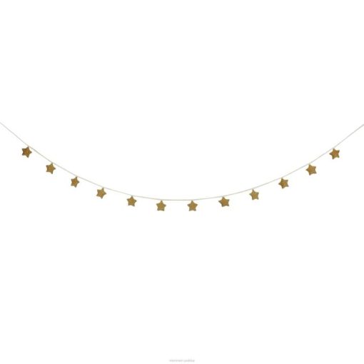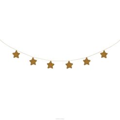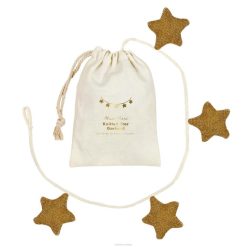 wprowadź piękno nocnego nieba do swojego pokoju dzięki tej wspaniałej girlandzie. te bawełniane gwiazdki, nawleczone na elegancki sznurek w kolorze kości słoniowej, ozdobione są złotą plamką, która nadaje efekt połysku. jest wyposażony w poręczną torbę ze sznurkiem do przechowywania.