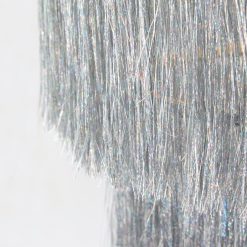 ten wspaniały żyrandol doda blasku każdej uroczystości. pięknie wykonana ze srebrnego świecidełka, z detalami z aksamitu i sznurka.