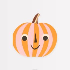 XP68935 zaopatrzenie imprez MERI MERI serwetki dyniowe w różowo-pomarańczowe paski (x 16)