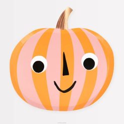 XP68936 zaopatrzenie imprez MERI MERI Różowo-pomarańczowe talerze z dynią w paski (x 8)